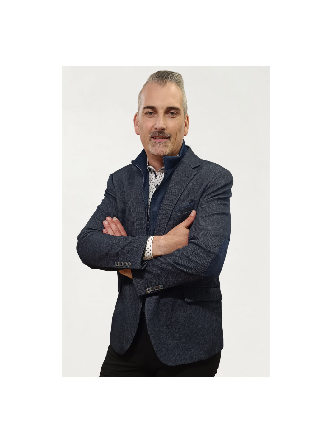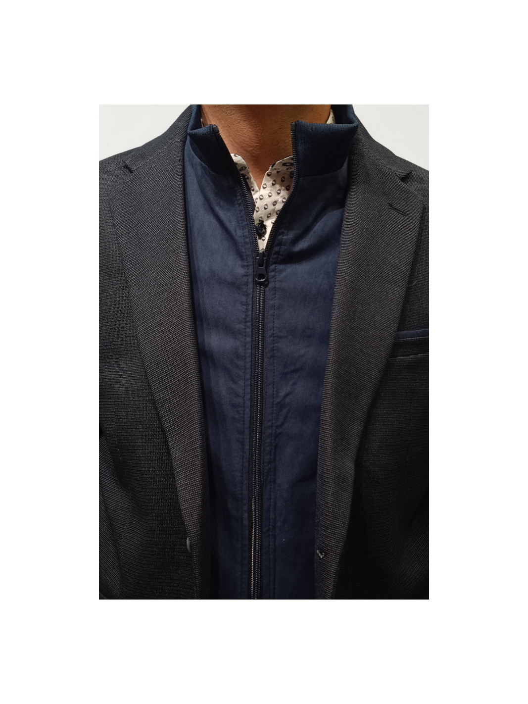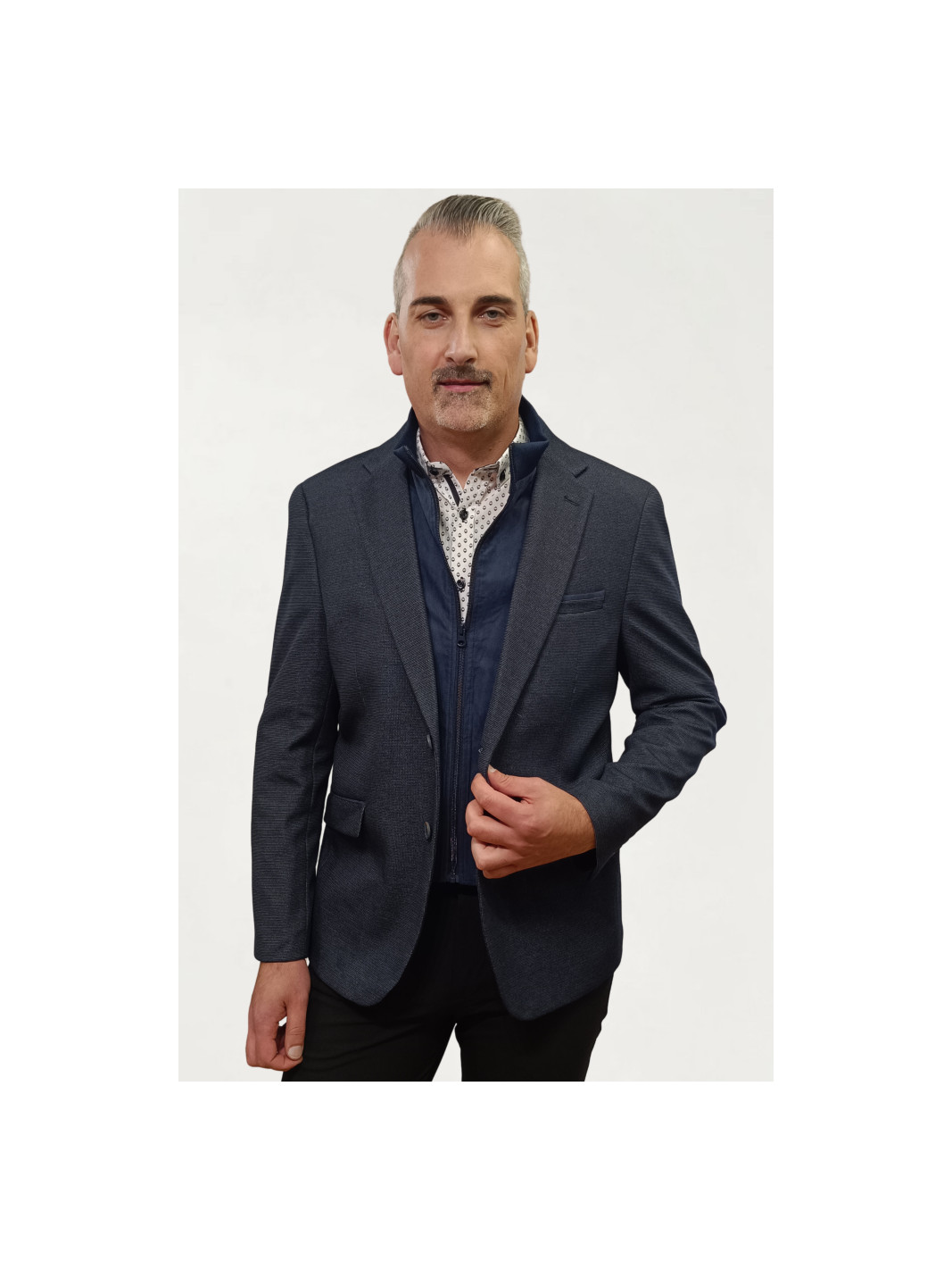 Americana azul en tejido tipo punto elástico de gran comodidad. Con codera y pechera desmontable al tono.