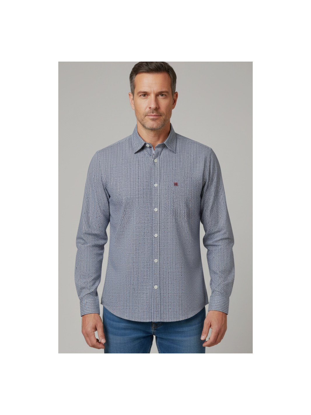 Camisa manga larga con dibujos multicolor. Logo de la marca bordado en el pecho. Corte Custom Fit, con pliegues laterales en la espalda.