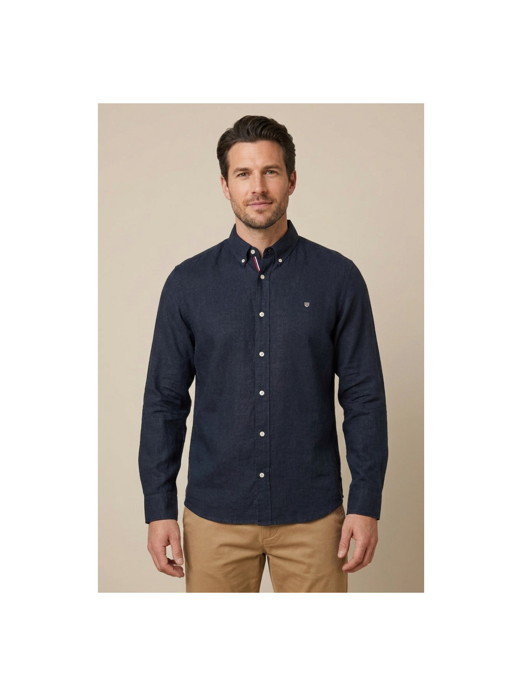 Camisa lino-algodón en color azul marino.