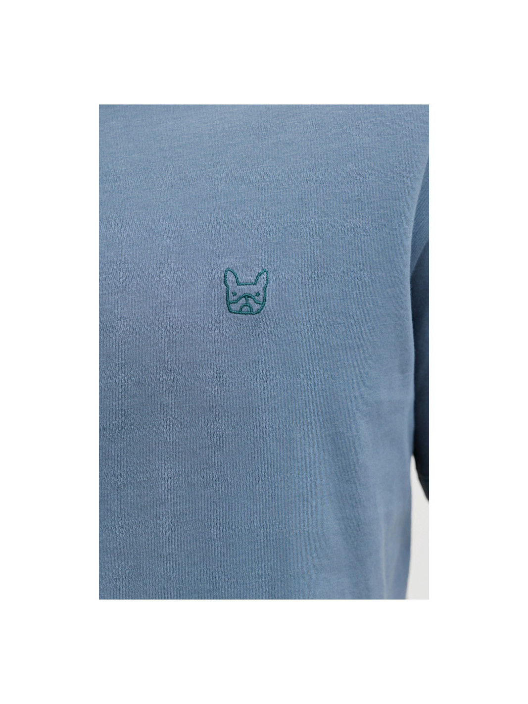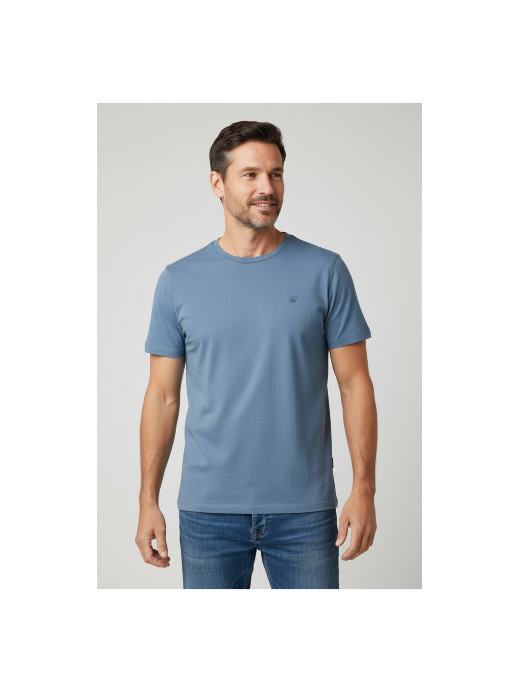 Camiseta manga corta. Color azul cobalto con logo bordado en el pecho en color verde. Composición: 100% Algodón orgánico