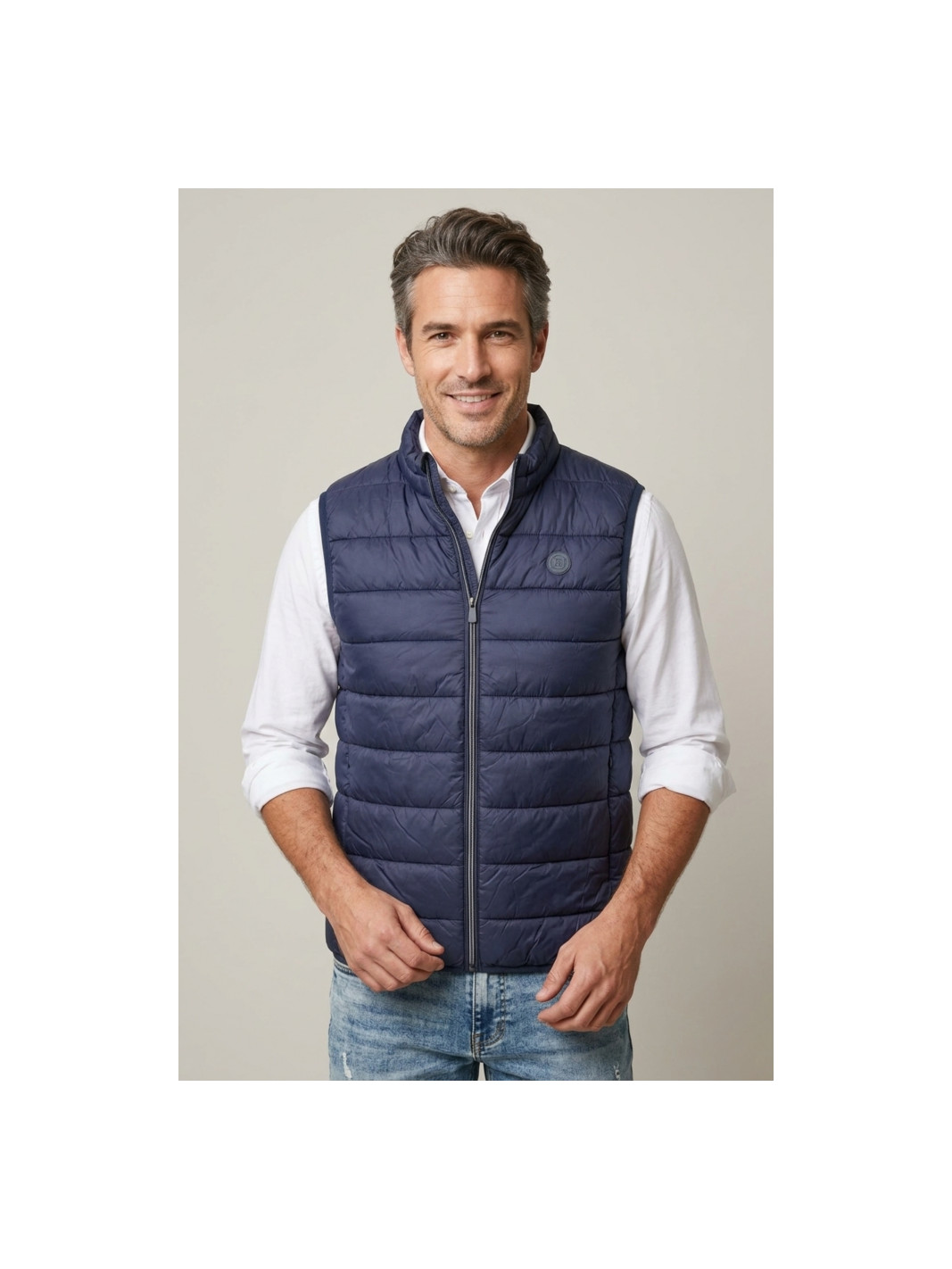 Chaleco acolchado ultraligero en color azul. Cierre de cremallera y dos bolsillos con cremallera invisible. Un básico atemporal, imprescindible en cualquier armario.