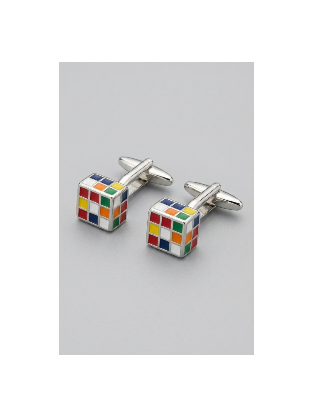 Gemelos de acero rodiado con forma de cubo de Rubik.