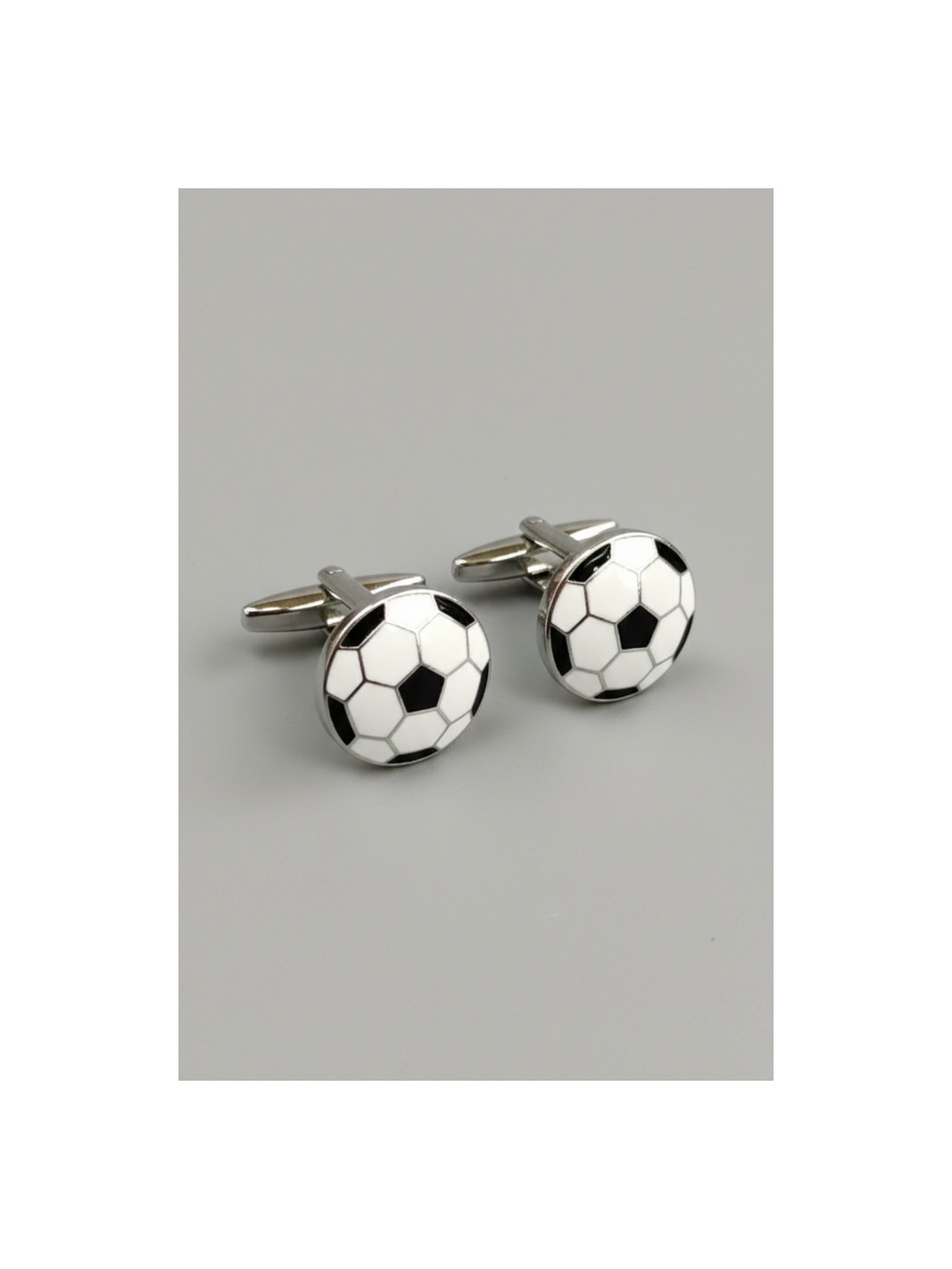 Gemelos de acero rodiado en forma de balón de futbol.
