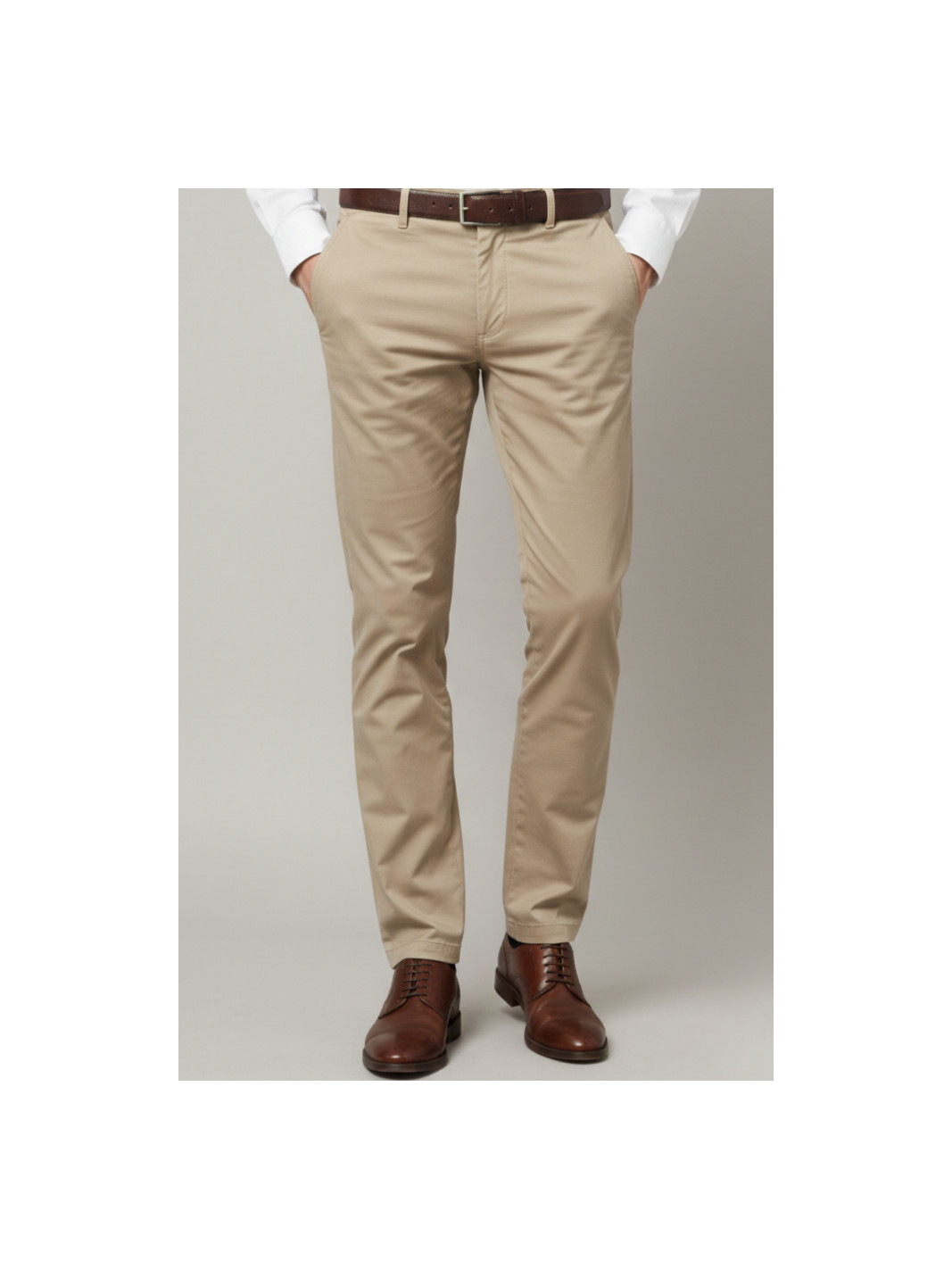 Pantalón de corte chino en color arena.