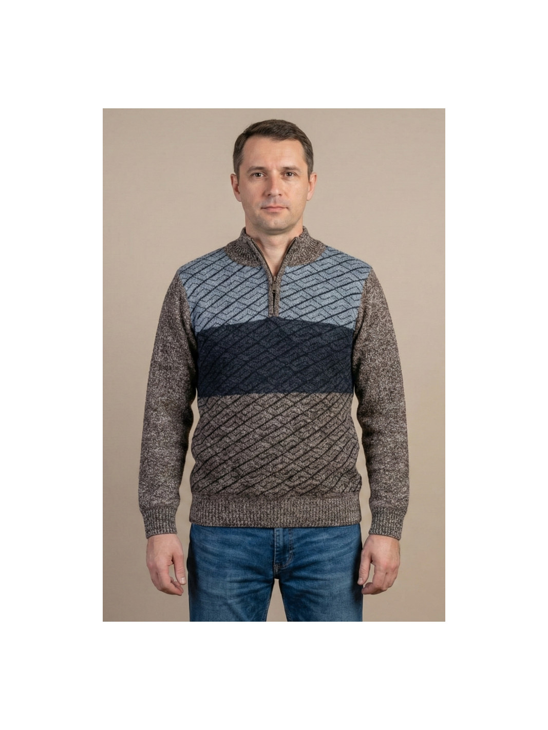 Jersey de cremallera. En tonos marrones y grises. Con forro polar en el interior.