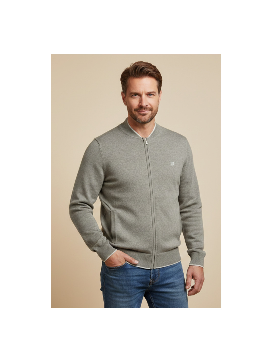 Chaqueta de punto de algodón. Color verde. Cierre de cremallera de doble carro.