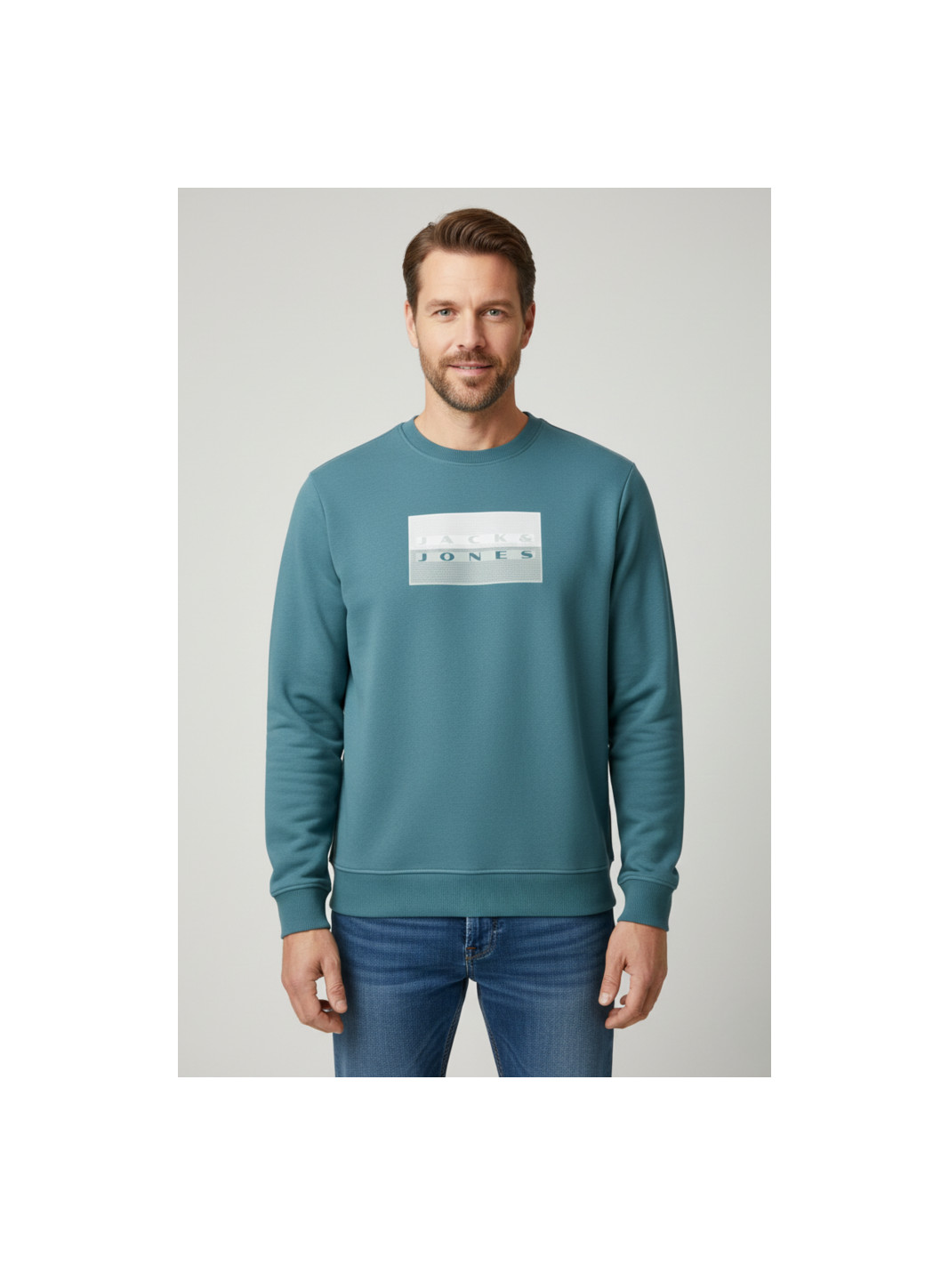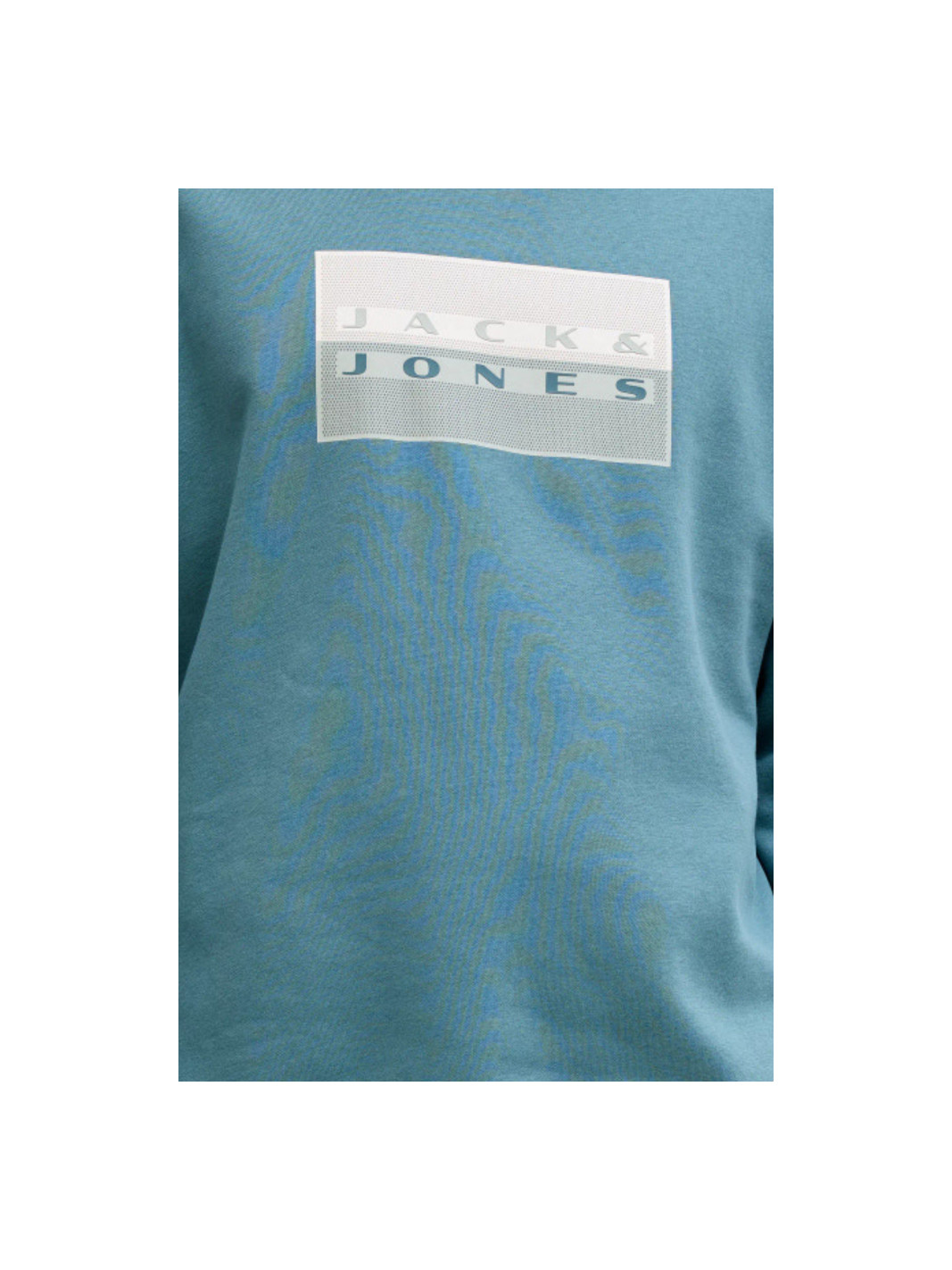 Sudadera cuello redondo. Color verde agua con logo engomado de la marca Jack Jones al tono. Corte Relaxed Fit Composición: 70% Algodón - 30% Polyester reciclado