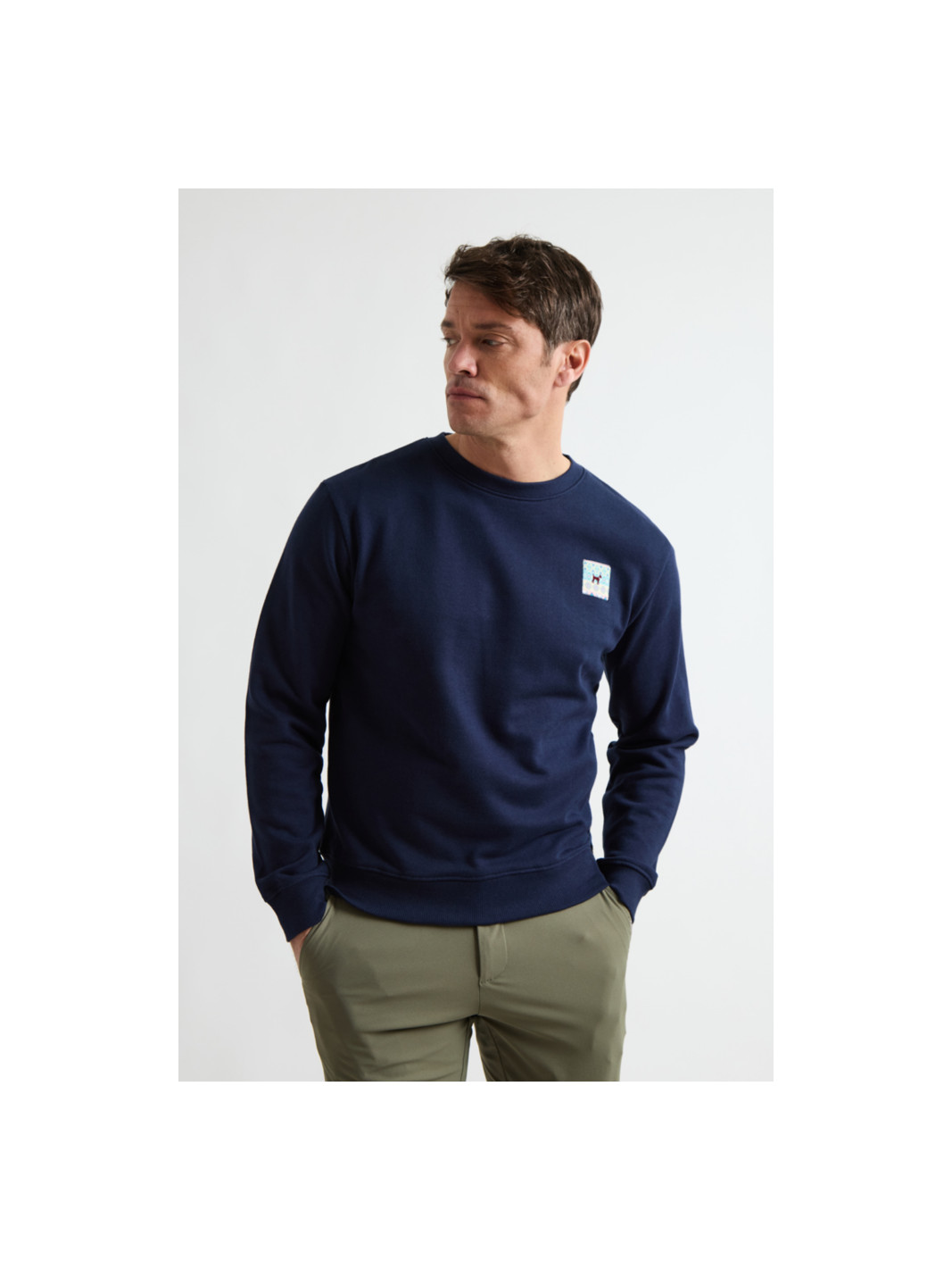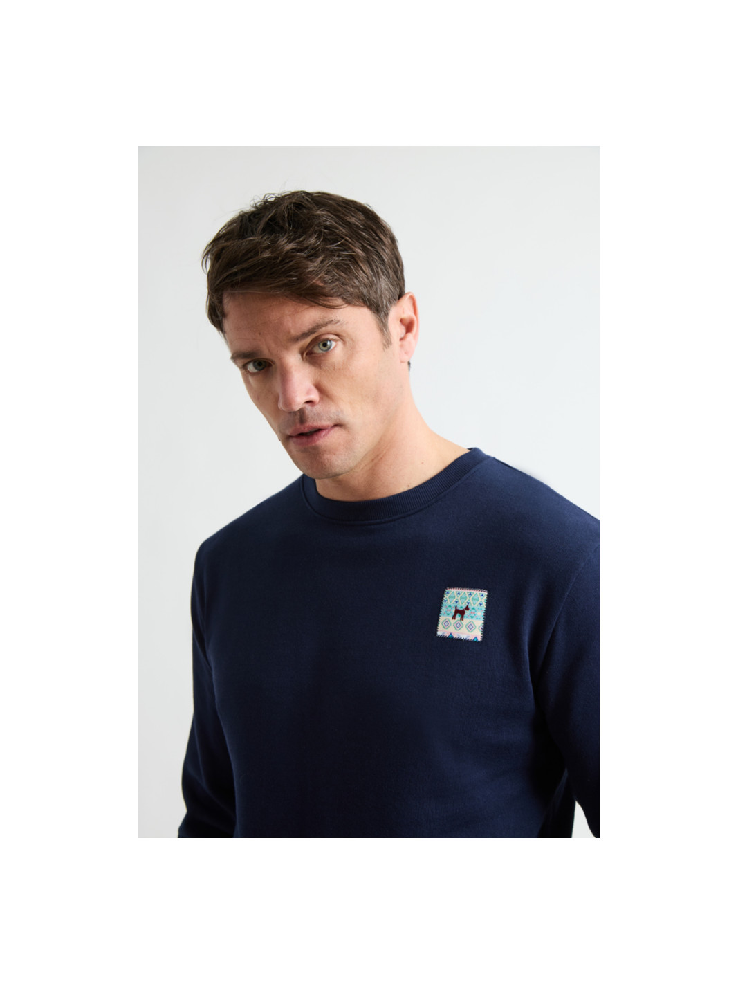 • Sudadera hombre sin capucha con logo estampado en el pecho y la espalda en diseño étnico.